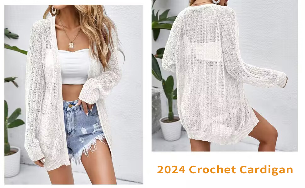 [Features] This crochet cardigan is lightweight, swing style, hip-length, long-sleeved, loose and casual.