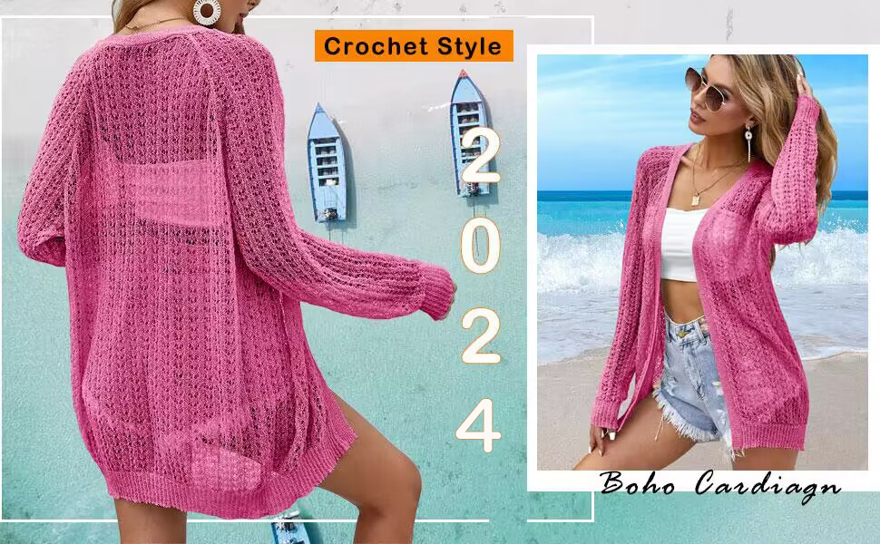 【Style】Women's Swing Cardigan/Crochet Cardigan Cover/Summer Lightweight Cardigan/Beach Crochet Cover.